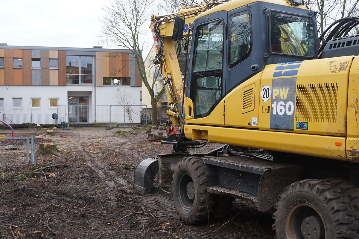 "Endlich startet der Ausbau", freut sich Frank Wolf, theologischer Gesamtleiter des Verbunds Protestantischer Kitas in Ludwigshafen und Altrip. Schon vor acht, neun Jahren begannen die Planungen für dieses und sechs weitere Kita-Bauvorhaben. In Mundenheim sind die Arbeiten nun Mitte Februar auf dem angrenzenden Grundstück gestartet, das die Kirchengemeinde zur Verfügung stellt. Zunächst wird gerodet, um Platz für den Neubau zu schaffen. "Leider müssen einige Bäume weichen, aber es wird viel Grün erhalten und wir werden neue Bäume pflanzen", versichert Frank Wolf.