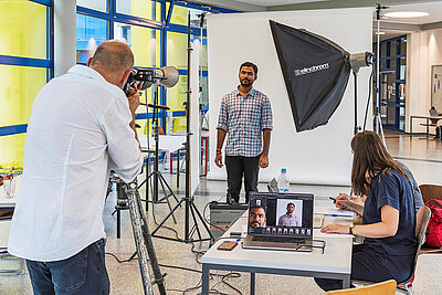 Und so läuft es ab: Wer will, kommt vorbei und lässt sich vor weißem Hintergrund fotografieren. Aus einer Serie von Porträtbildern wählt jede und jeder die Aufnahme aus, auf der sie oder er sich am besten gefällt.